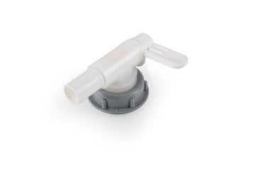 Im Lieferumfang enthalten ist der Abfüllhahn aus Kunststoff mit einfachem Schraubverschluss in der Farbe Weiß/Grau, passend für 5-Liter-Cubitainer.