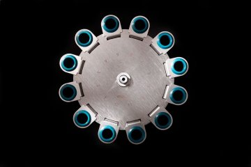- Zwölf Becher-Behälter mit je 15 ml Fassungsvermögen, in einem 12-Platz-Rotor integriert.