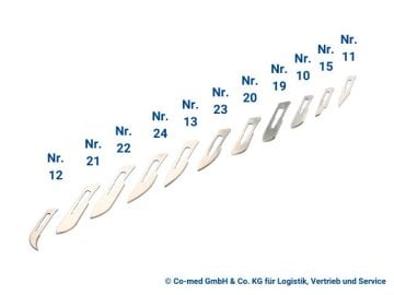 - Einfaches Aufstecken auf den jeweiligen Skalpellklingengriff und sicheres Verrasten sichern eine stabile Handhabung.