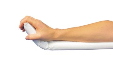 - Die Schiene besteht aus weichem Schaumstoff, und eine modellierbare Aluminiumeinlage passt sich der Unterarmform an.