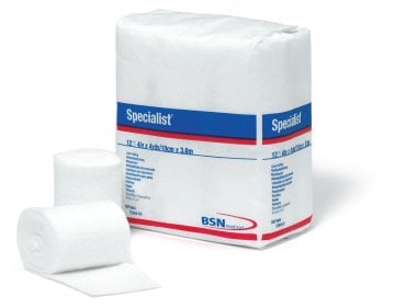 Die latexfreie Specialist-Polsterwatte-Binde von essity wurde speziell für die Unterpolsterung starrer und stützender Verbände entwickelt. Sie dient dazu, Druck- und Reibungseinwirkung des Gips- oder Castmaterials zu minimieren, exponierte Hautpartien zu schützen und eine schonende Behandlung über längere Therapiedauer zu ermöglichen. Die bauschige, hautfreundliche Textur verbessert den Tragekomfort und reduziert das Risiko schmerzhafter Druckstellen, während der integrierte Lagenverbund durch Mikrofaltung für eine stabile Polsterung sorgt und sich flexibel an Konturen anpasst.