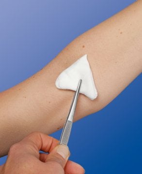 - Gute Handhabung mit Pinzette ermöglicht kontrollierte Reinigungs- und Desinfektionsarbeiten an Hautoberflächen.