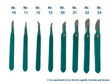 Im Lieferumfang enthalten sind sterile Einmal-Skalpelle, jeweils einzeln verpackt in Peelpacks. Die verfügbaren Figurenvarianten ermöglichen eine passende Auswahl entsprechend der Behandlungsanforderung.