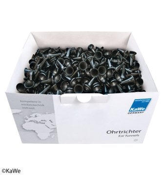 Im Lieferumfang enthalten ist ein Einmal-Ohrtrichter aus Kunststoff in schwarzer Farbe, der in zwei Größen mit Durchmesser 2,5 mm bzw. 4,0 mm verfügbar ist. Die Verpackungseinheit entspricht der typischen Praxis der Einwegartikel und gewährleistet hygienische Verwendung.
