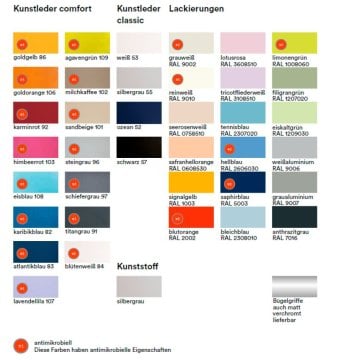 - Antimikrobielle Lackierung und Polsterung erhöhen hygienische Anforderungen in der Praxis.