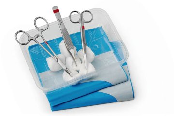 - Enthält Schutzunterlage, Kunststoffschale, Gazetupfer und Instrumente in einer abgestimmten Packung, die rasch griffbereit ist.