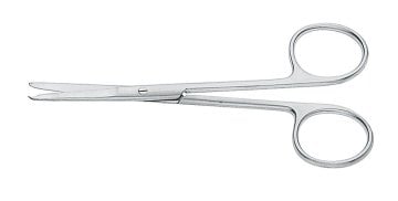 - Unteres Scherenblatt mit einer Einbuchtung zum Fixieren des Nahtmaterials, wodurch Faden oder Draht ohne merkbaren Gewebezug entfernt werden kann.