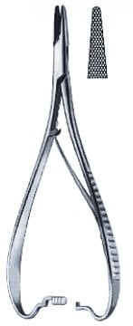 - Es besitzt keine Hartmetalleinlage, wodurch Gewebebelastungen reduziert und eine schonende Naht ermöglicht wird.