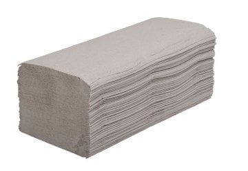 Eine Packung ZVG Falthandtücher Krepp in Zick-Zack-Faltung, 1-lagig, 25 x 23 cm, hergestellt aus 100% Recycling-Material.